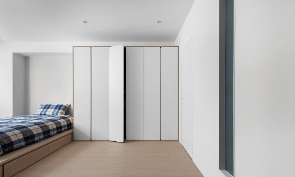 架高的卧室地板不仅增加了收纳空间,不刻意定义场域的使用方式,创造「流动式生活空间」,也让空间更有层次感。