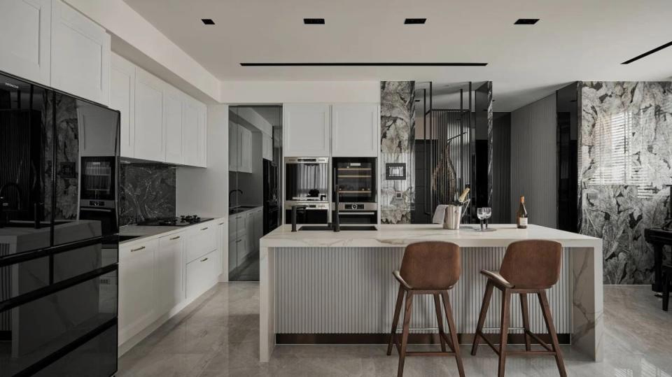 • 连接餐桌:中岛侧边插座设计、搭配隐藏餐桌、旋转餐桌整合餐厨机能。
